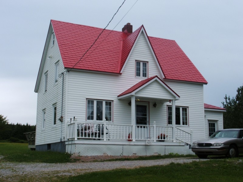 This one and one half storey house was built in the Gothic Revival style. The floor joists and wall uprights are hand-hewed (black spruce), white washed and birch bark between cracks in boards. Small area of the living room has hardwood floor. There have been different porches over the years. The house was lifted in 1978 for the purpose of adding a basement. Extensive renovations have included new chimney, roof, windows deck and siding.